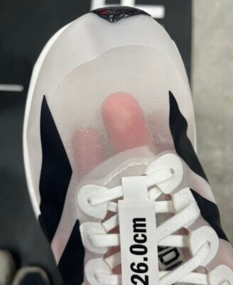 短い距離ならともかく、フルマラソンではとても履きこなせない感じが試着しただけでわかるレベルでした。