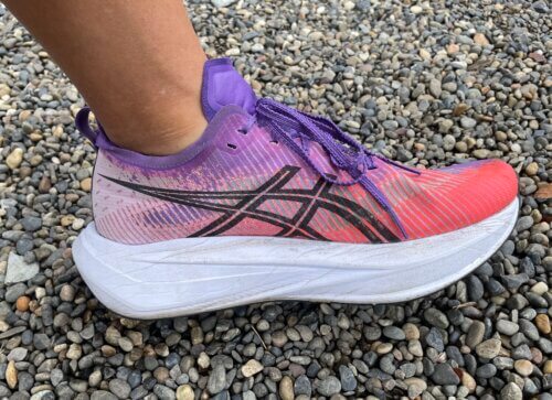 これだけの厚みとスペックから推測するとフカフカのクッションを想像する人が多いと思いますが、硬めの履き心地だったスーパーブラスト2をやや柔らかくした程度です。
