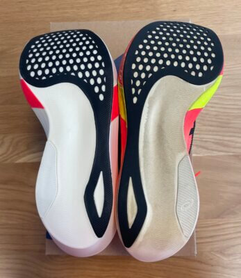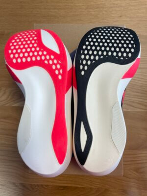 ただし、ライド感と安定感はエッジパリより弱まったため、ヴェイパーフライやアディオスプロにはないエッジパリの感覚が好きだった方にはマイナス点です。